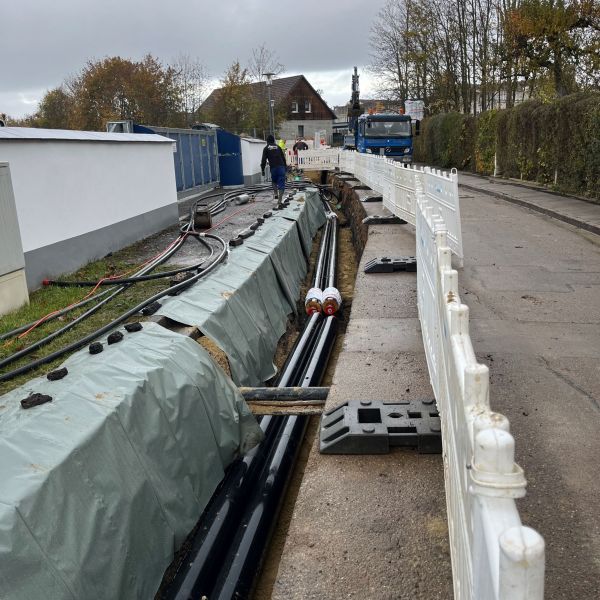 Die Erweiterung unseres Nahwärmenetzes im Bereich Friedrich-Völklein-Straße/August-Lutz-Straße/Am Steinerbach schreitet voran.