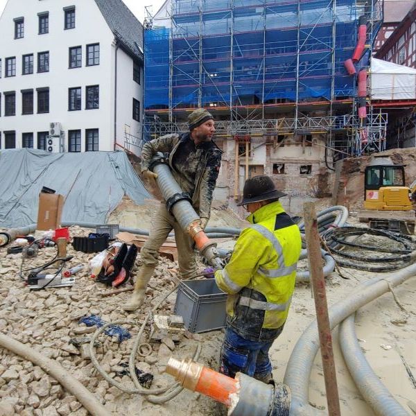In der Reithausgasse, am Klosterplatz und im Kupfergäßchen werden gerade neue Wasserleitungen verlegt.